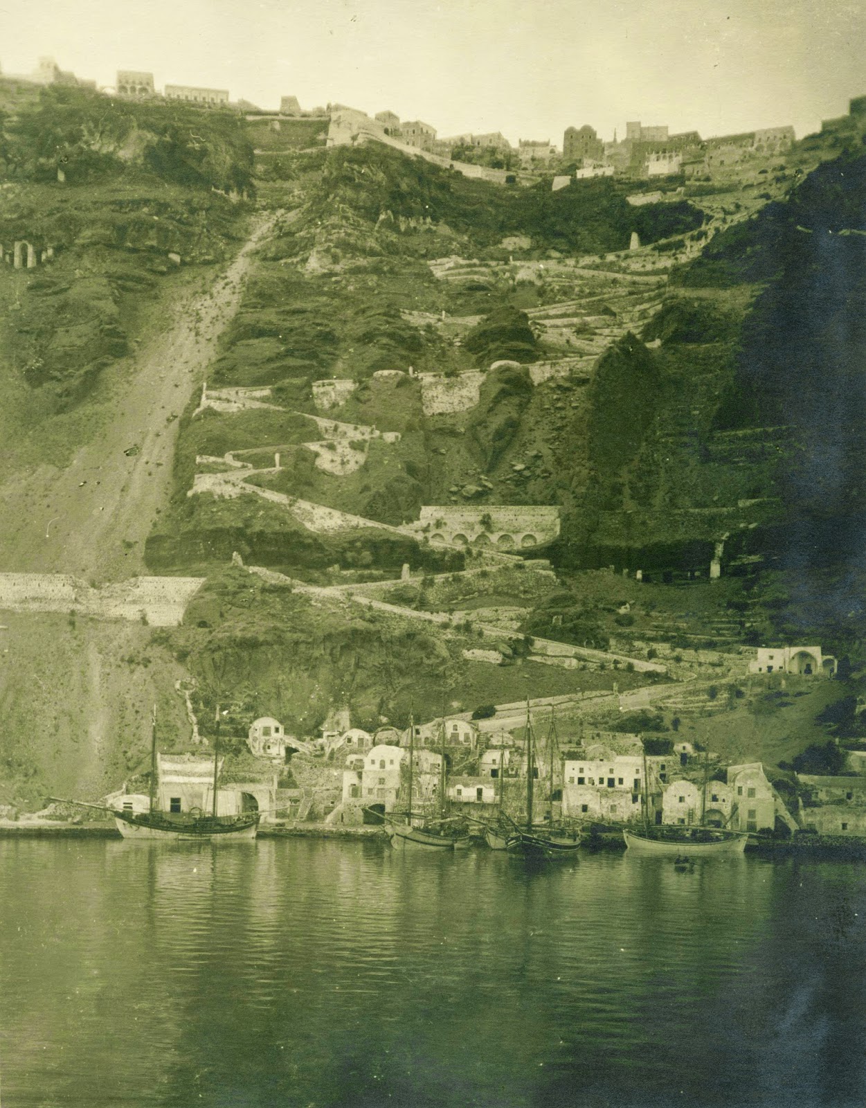 Η ανάβαση στα Φηρά είναι επίπονη. Ο δρόμος όλος καλντιρίμι και σκάλες ελίσσεται στην απότομη πλαγιά ενός πανύψηλου βράχου, ο οποίος οφείλεται στις πέτρες στις σκουριές στη λάβα και στην τέφρα μιας πανάρχαιας ηφαιστειακής έκρηξης. Τριάντα άλογα και μουλάρια, εξήντα αγωγιάτες και πλήθος περίεργων αποτελούν την πρωθυπουργική πομπή. Ψηλά πάνω από τα κεφάλια μας, ολόκληρος ο λαός της κατάλευκης κωμόπολης είναι ανεβασμένος στα λιακωτά των σπιτιών και μας κοιτάζει ανερχόμενους. Την έλλειψη ίχνους πρασινάδας την αντικαθιστούν τα πολύχρωμα παρασόλια των γυναικών που φαντάζουν από μακρυά σαν τεράστια λουλουδια. Η εικόνα του προπορευόμενου πάνω στο μουλάρι του πρωθυπουργού και του θεωμένου από τα άσπρα ψηλά λιακωτά πλήθούς μου φέρνει στο νου την είσοδο του Χριστού στην Ιερουσαλήμ. Ο … «Γολγοθάς» όμως δεν απέχει πολύ. Τα πάθη του εκδράμοντος χάριν αναψυχη πρωθυπουργού αρχίζουν από τη στιγμή της αφιππεύσεως. Δεν προφταίνει να πατήσει το πόδι του στις πέτρες του δρόμου και μεταφέρεται από …τον Άνναν εις τον Καιάφα. Από τον τοποτηρητή του Ορθόδοξου επισκόπου στον Λατίνο Επίσκοπο Σαντορίνης, …Καμπάνες…Δοξολογίες…Η μεταφορά αυτή γίνεται εν μέσω ενός πλήθους ασφυκτικός συνωστισμένου και απειλούντος ανα πάσα στιγμή να τον λιώσει. Όλοι είναι περίεργοι να δουν «πως είναι». Οι μητέρες σηκώνουν ως το κεφάλι τους τα παιδιά, κύματα ανθρώπων σπρώχνουν τους λίγους χωροφύλακες οι οποίοι φωνάζουν: «Τόπο! Τόπο, παιδιά», άλλα κύματα σπρώχνονται, άλλα κύματα σπρώχνονται από μερικούς αυτεπαγγελτους τηρητές της τάξης …[…]