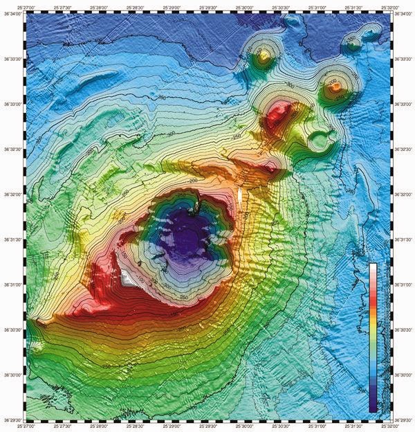 […] Όλο το Αιγαίο από τη Ρόδο έως τη Χίο και από τον Πειραιά έως τα Δαρδανέλια αντιλαλούσε από τις βροντές του ηφαιστείου και γέμιζε από τις τέφρες που εκτινάσσονταν και την κίσσηρη που έπλεε στη θάλασσα. [….] Ένα πλοίο από την Αμοργό που βρέθηκε κοντά στο σημείο της έκρηξης στις 2 Οκτωβρίου 1650 έμεινε ακυβέρνητο να πλέει στον άνεμο με τους εννέα ναύτες νεκρούς, γεγονός που έκανε τεράστια εντύπωση στα γύρω νησιά.